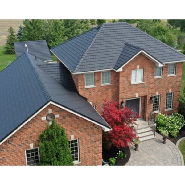 True Nature’s Cedar Creek Shake metal roof tiles will never split, warp, mold or rot. A thicker profile creates a shadow line that makes Cedar Creek metal tiles indiscernible from cedar shake when installed. Quadra-Loc technology locks the tile in place on all four sides, resulting in unprecedented water-tightness and virtually eliminates uplift from high winds and driving rains.The deep key ways force water down the roof into the gutters.
