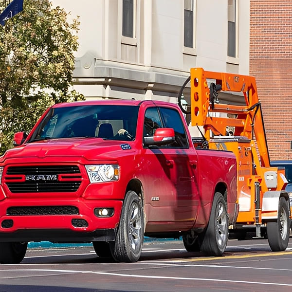 The X1260 features an electric-driven hydraulic lift system operated by remote control with E-Stop. All XSERIES models are tested to meet OSHA fall protection codes. They are road-towable and can be towed by nearly any vehicle on the market, and also feature built-in fork pockets for easy transport indoors.
